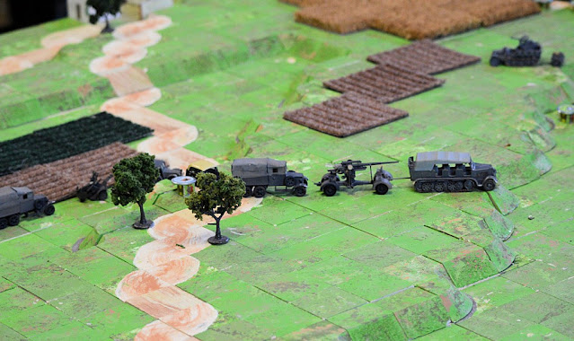 The Germans deploy just north of Hoogvleit with their Battalion command stand controlling the mortar and MMG, and two infantry platoons.